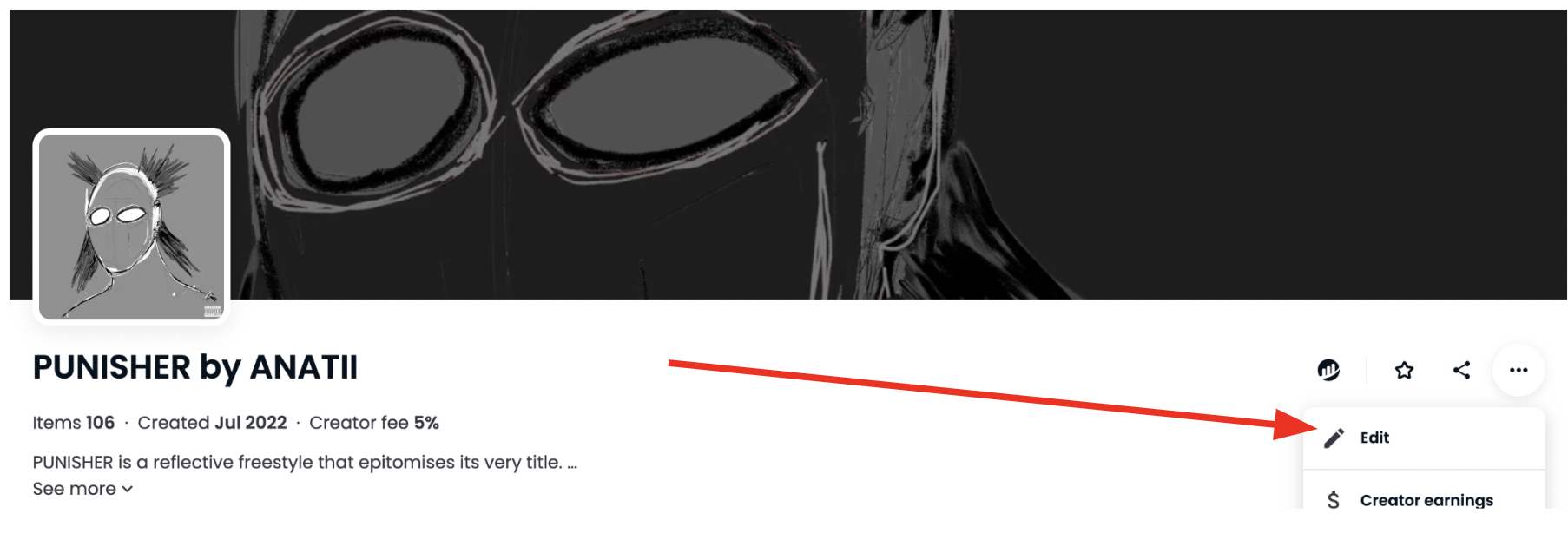 **Step 3:** to edit your collection page, simply click on the 3 dots at the right of the page's header and click on 'Edit', as seen on the image below: